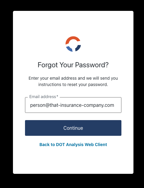 Step 2: Enter the email address associated with your DOT Analysis account, then click "Continue".